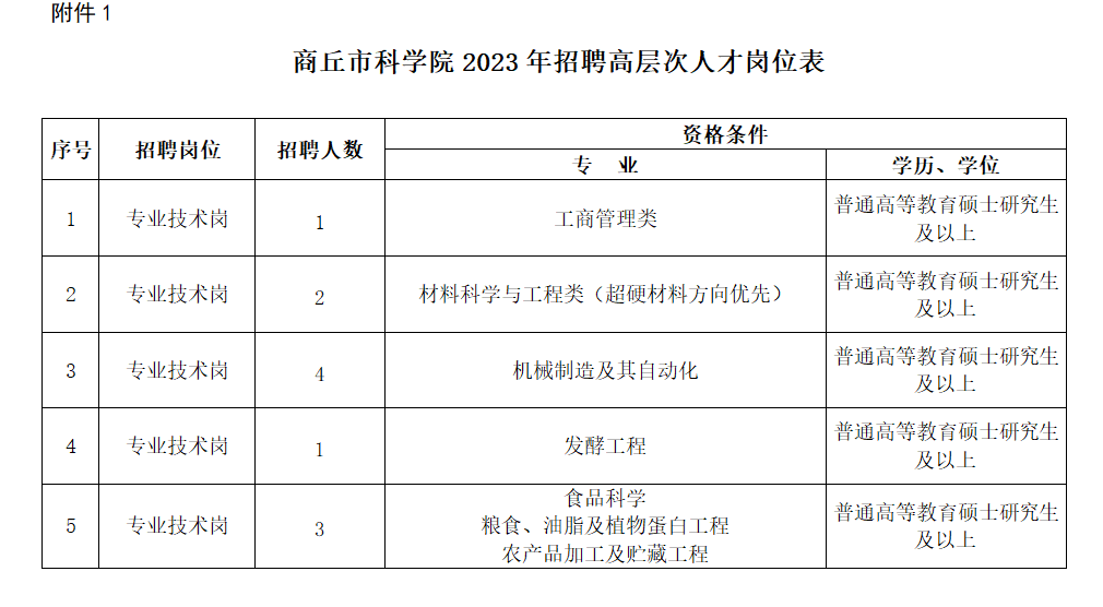 根据《第六届中国·河南招才引智创新发展大会商丘总体实施方案》(商招才办〔2023〕14号)和《河南省事业单位招才引智“绿色通道”实施细则》(豫人社〔2022〕26号)等有关规定,结合工作需要,商丘市科学院招聘高层次人才11名。现公告如下:
