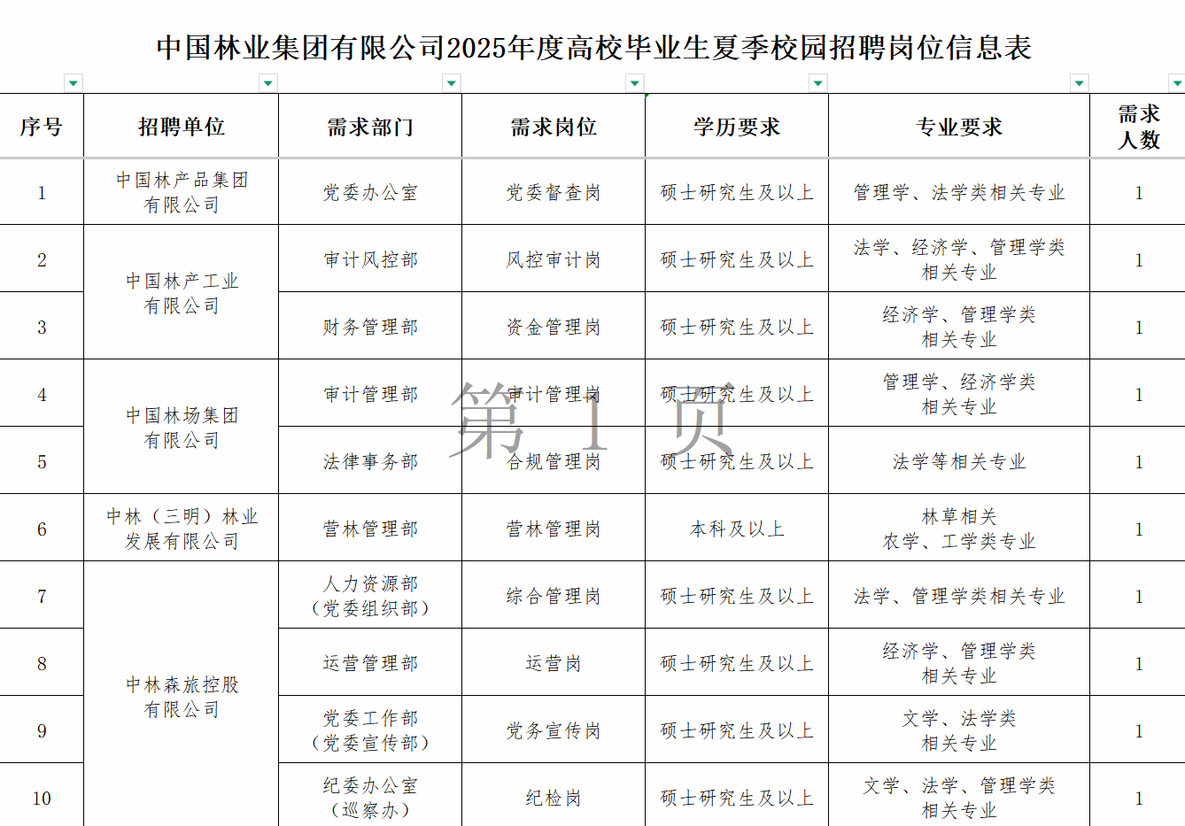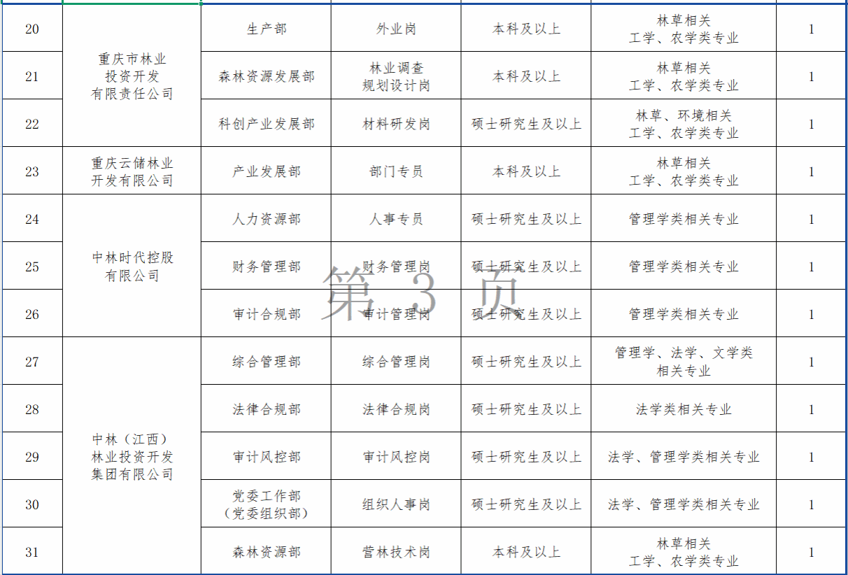 中国林业集团有限公司是我国林草行业唯一一家中央企业。中国林业集团忠实践行习近平生态文明思想,主动融入和服务国家重大战略,以“打造具有全球竞争力的世界一流林草生态集团”为目标愿景,聚焦“国储林、碳汇、生态修复”等朝阳产业,锚定林草产业发展主战场,着力打造国家重点生态工程建设示范样板,为推进强国建设、民族复兴伟业贡献中林智慧和中林力量。为适应人才强企需要,现开展2025年夏季校园招聘工作。有关事项公告如下: