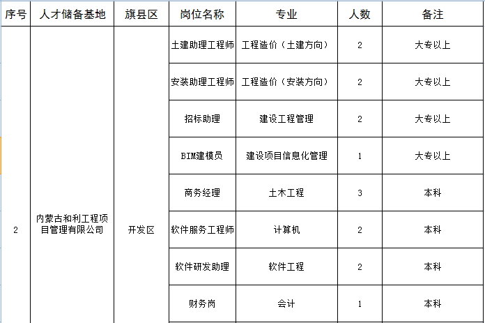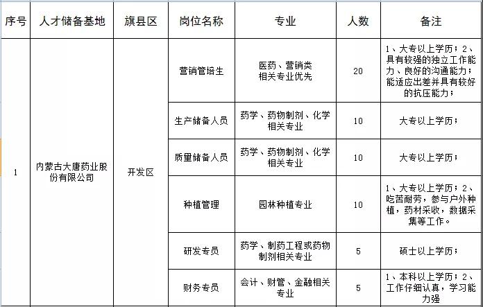 招聘简介:做好当前形势下高校毕业生就业创业工作,深入实施高校毕业生就业创业促进计划和基层成长计划,采取切实有效措施,拓宽就业门路,鼓励高校毕业生到中小企业、基层社会团体和民办非企业单位就业,根据《内蒙古自治区面向中小企业和非公有制企业选拔储备高校毕业生工作实施方案》《关于进一步加强高校毕业生中小企业人才储备工作的通知》要求,呼和浩特市人力资源和社会保障局广泛征集中小企业人才储备岗位需求信息,编制了《呼和浩特市2020年中小企业人才储备岗位需求目录》,现予发布。请广大内蒙古自治区生源全日制普通高校专科以上应届毕业生及毕业三年内未就业的高校毕业生积极参与,选择适合自己的岗位就业。