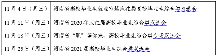 1.参会用人单位招聘信息将通过河南省毕业生就业信息网、短信平台、微信公众号等途径直接通知各高校毕业生。