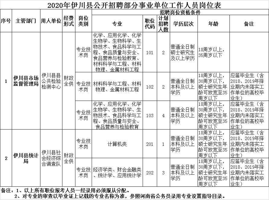 招聘岗位、招聘人数、招聘岗位条件等详见《2020年伊川县公开招聘部分事业单位工作人员岗位表》(附件1)。
