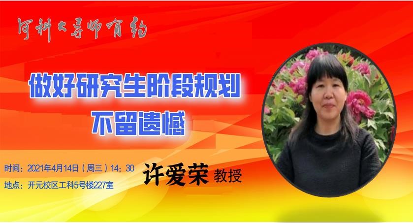 《导师有约》是河南科技大学党委研究生工作部/研究生院打造的知名教授、校内外贤达人士与研究生促膝畅谈、心灵交流、分享经历、共话精神的校园文化品牌。本期特邀嘉宾是研究生导师许爱荣教授,如果你想手捧香茗与名师对话,如果你想请他释疑解惑,许爱荣教授等你来共话人生。欢迎你踊跃报名!