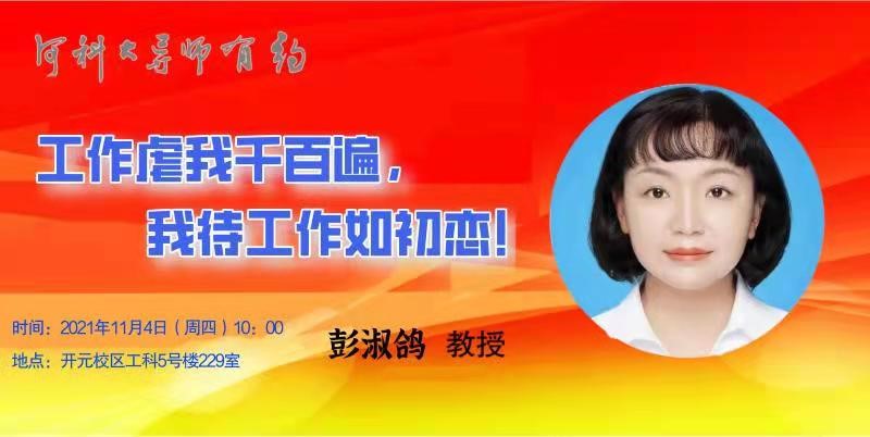 《导师有约》是河南科技大学党委研究生工作部/研究生院打造的知名教授、校内外贤达人士与研究生促膝畅谈、心灵交流、分享经历、共话精神的校园文化品牌。本期特邀嘉宾是硕士生导师彭淑鸽教授,如果你想手捧香茗与名师对话,如果你想请她释疑解感,彭淑鸽教授等你来共话人生。欢迎你踊跃报名!