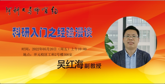 《导师有约》是河南科技大学党委研究生工作部/研究生院打造的知名教授、校内外贤达人士与研究生促膝畅谈、心灵交流、分享经历、共话精神的校园文化品牌。本期特邀嘉宾硕士生导师吴红海副教授,如果你想手捧香茗与名师对话,如果你想请他释疑解惑,吴红海副教授等你来共话人生。欢迎你踊跃报名!