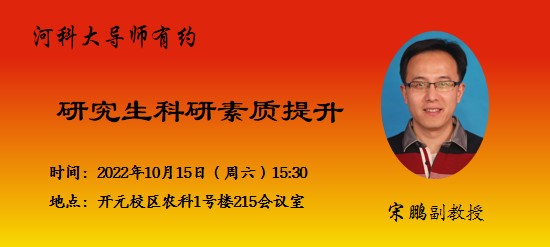 《导师有约》是河南科技大学党委研究生工作部/研究生院打造的知名教授、校内外贤达人士与研究生促膝畅谈、心灵交流、分享经历、共话精神的校园文化品牌。本期特邀嘉宾是博士生导师宋鹏副教授,如果你想手捧香茗与名师对话,如果你想请他释疑解惑,宋鹏副教授等你来共话人生。欢迎你踊跃报名!