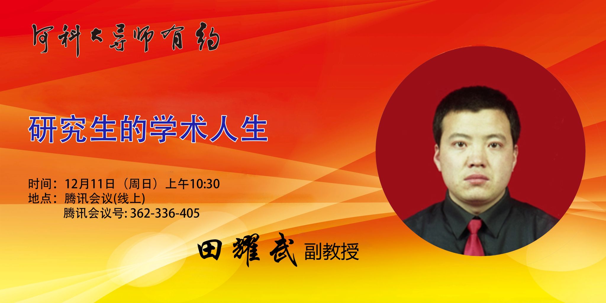 《导师有约》是河南科技大学党委研究生工作部/研究生院打造的知名教授、校内外贤达人士与研究生促膝畅谈、心灵交流、分享经历、共话精神的校园文化品牌。本期特邀嘉宾是研究生导师田耀武副教授,如果你想手捧香茗与名师对话,如果你想请他释疑解惑,田耀武副教授等你来共话人生。欢迎你踊跃报名!