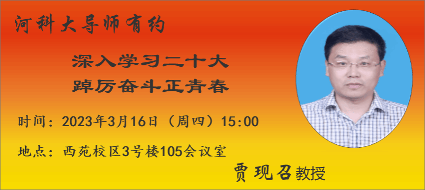 《导师有约》是河南科技大学党委研究生工作部/研究生院打造的知名教授、校内外贤达人士与研究生促膝畅谈、心灵交流、分享经历、共话精神的校园文化品牌。本期特邀嘉宾是硕士研究生导师贾现召教授,如果你想手捧香茗与名师对话,如果你想请他释疑解惑,贾现召教授等你来共话人生。欢迎你踊跃报名!