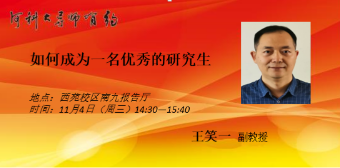 《导师有约》是河南科技大学党委研究生工作部/研究生院打造的知名教授、校内外贤达人士与研究生促膝畅谈、心灵交流、分享经历、共话精神的校园文化品牌。本期特邀嘉宾是王笑一副教授,如果你想手捧香茗与名师对话,如果你想请他释疑解惑,王笑一副教授等你来共话人生。欢迎你踊跃报名!