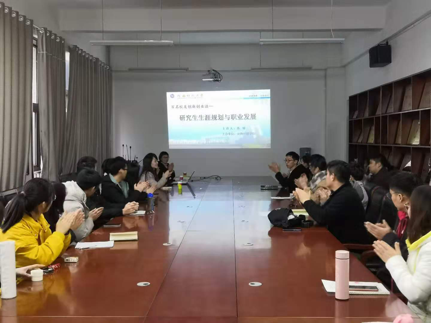 12月4日下午,由党委研究生工作部/研究生院主办、动物科技学院承办的“百名校友创新创业谈”—— 苏锐校友创新创业报告会在农科2号楼336会议室举办。会议由研究生辅导员张小玲主持,普莱柯人力资源部经理苏锐、副经理孙洁和动物科技学院各年级研究生参加。