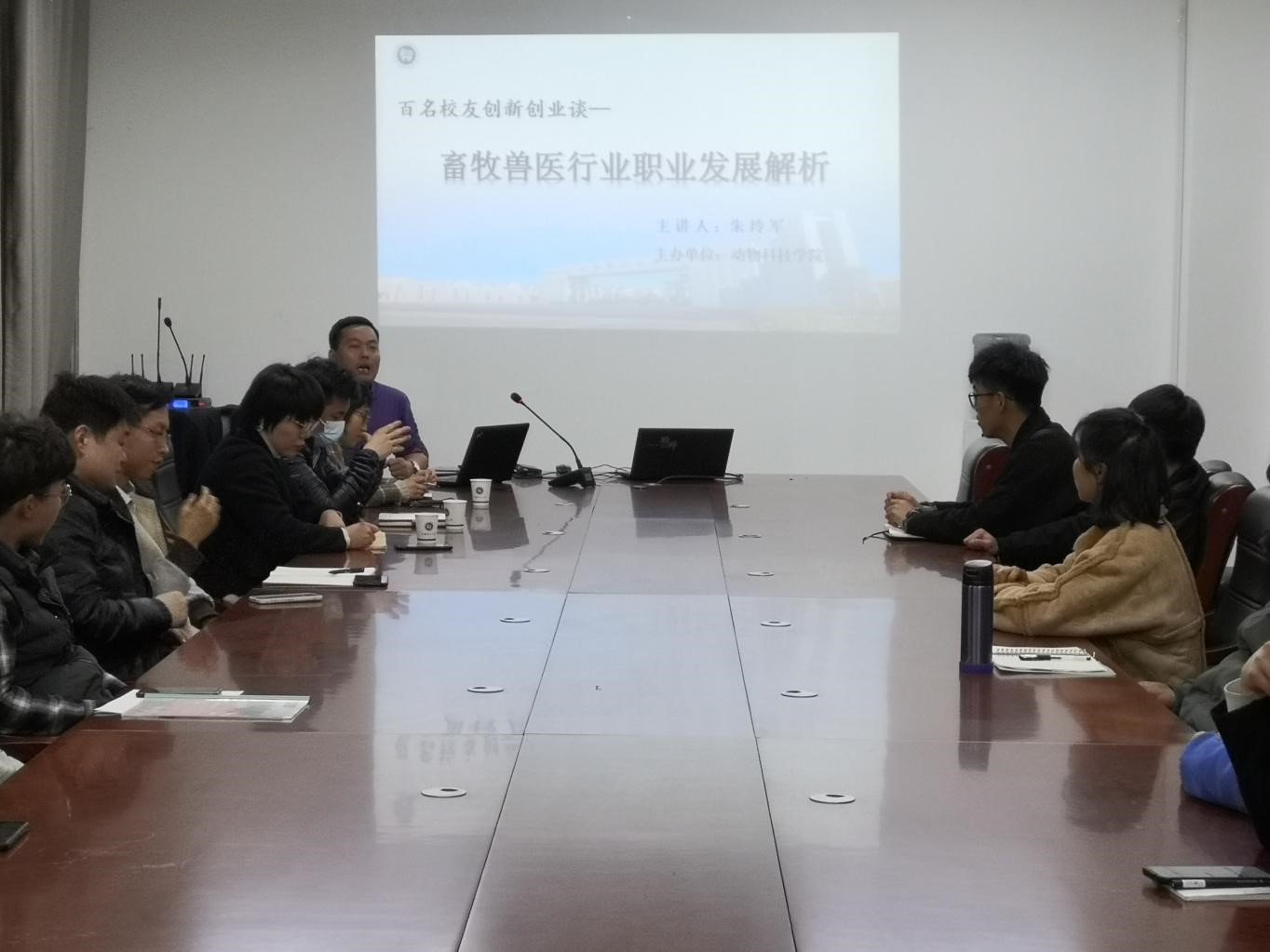 3月17日下午,由党委研究生工作部/研究生院主办、动物科技学院承办的“百名校友创新创业谈”——朱玲军校友创新创业报告会在农科2号楼336举办。会议由动物科技学院研究生辅导员张小玲老师主持,动物科技学院研究生及本科生学生代表参加会议。