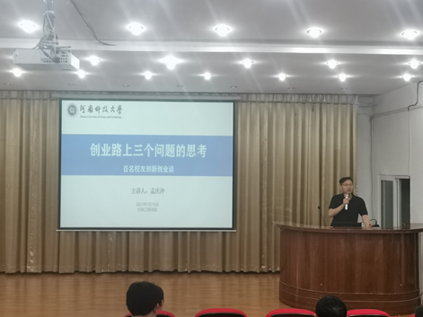 5月14日下午,由党委研究生工作部/研究生院主办、机电工程学院承办的“百名校友创新创业谈”——孟庆冲校友创新创业报告会在河南科技大学西苑校区南九学术报告厅成功举办,此次讲座由机电工程学院副院长李聚波主持,研究生秘书杨丽秀和机电工程学院全体研究生参加。