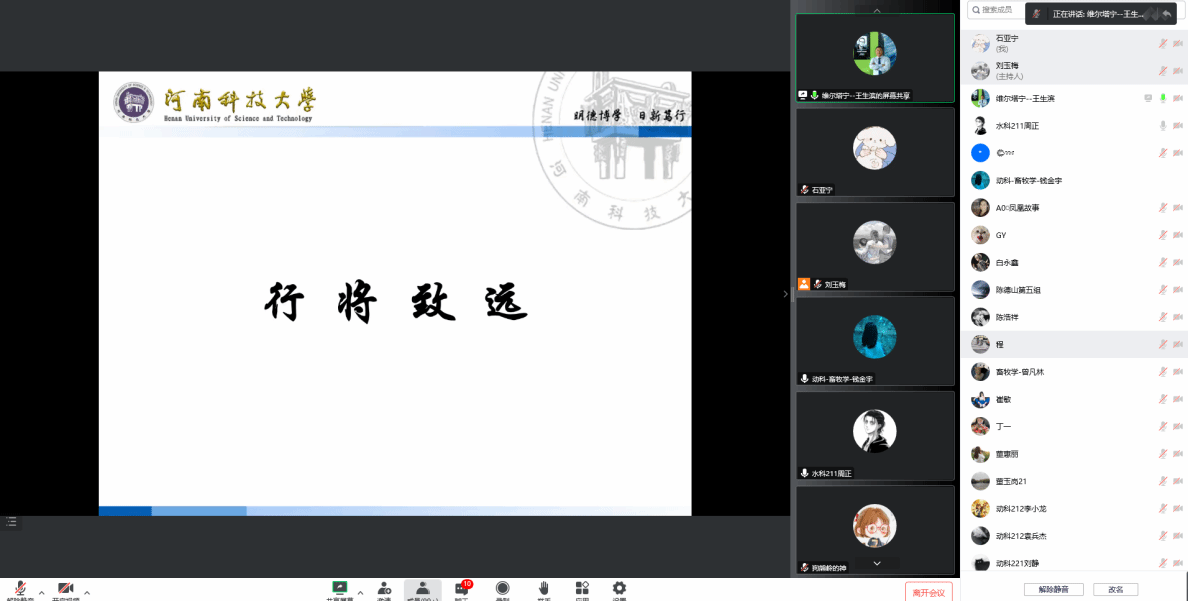 最后,刘院长以“行、将、致、远”四个字对本次讲座做出了深刻总结。告诉同学们人生不是一帆风顺,要脚踏实地,一步一个脚印,并不断提升自己,才能实现远大的理想,实现人生价值。因此,作为一名研究生,我们更要迎难而上,不退缩,立足现实,凝神致力于远大理想,路途才会更加宽广长远。