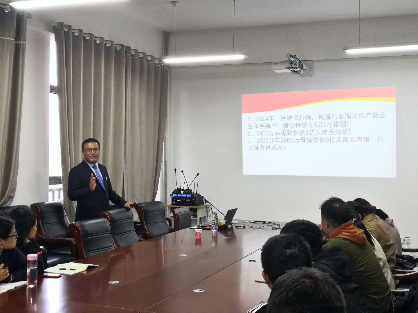 李建房校友,我校2013届硕士毕业生、现任河南银发牧业有限公司常务副总裁、荣获“突出贡献兽医专业学位获得者”称号。李建房校友围绕“打破思维模式、树立行业标杆”的主题,结合自身工作经历,为同学们介绍了畜牧业尤其是养猪行业的发展现状以及未来发展趋势。之后,李建房校友希望同学们能够抓住机遇,为畜牧养殖行业多做贡献。