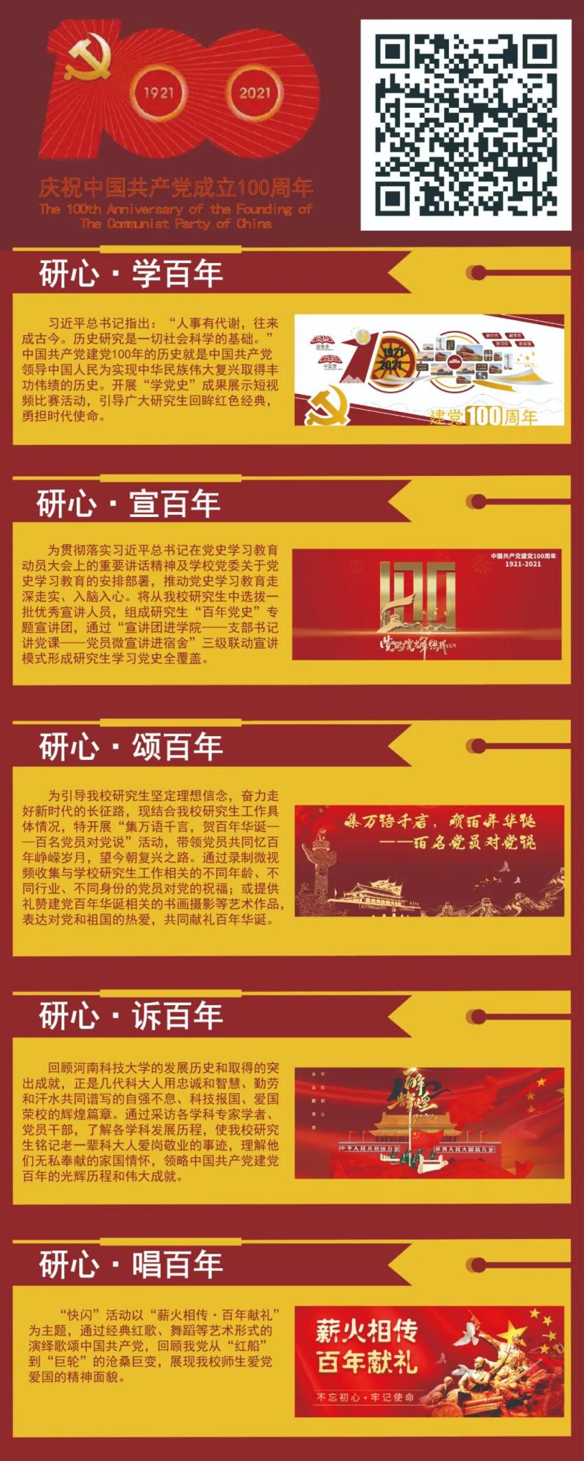 从五四到七一,这是青春向党的礼赞,致敬百年,这是研心向党的诉说。在庆祝建党100周年之际,为充分结合党史学习教育和我校研究生实际,系统开展党史宣传教育,充分发挥网络育人功能,党委研究生工作部通过新媒体平台开设“研心·学百年”、“研心·宣百年”、“研心·颂百年”、“研心·诉百年”、“研心·唱百年”等党史学习教育五大模块。我们将从5月4日至7月1日,每天推出党史学习教育五大模块其中一项内容进行展示,引导广大青年在知史中爱党,在知史中爱国,让初心薪火相传,把使命永担在肩。