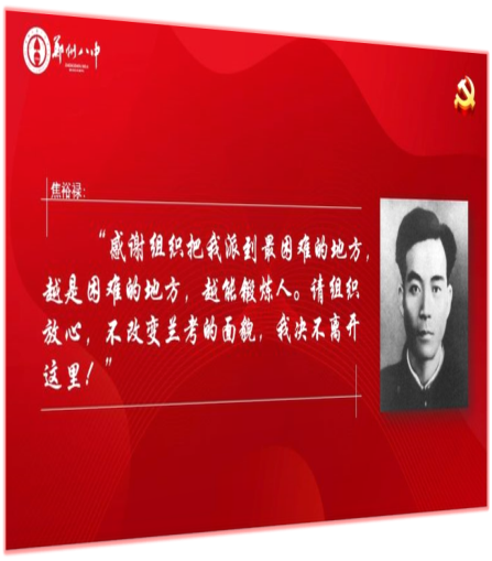 焦裕禄表示:“现在正是兰考困难的时候,组织把这副担子交给我,是对我的信任。我相信,那里有党的领导,有36万要求革命的人民,什么困难都可以克服,我一定完成党交给的任务!”