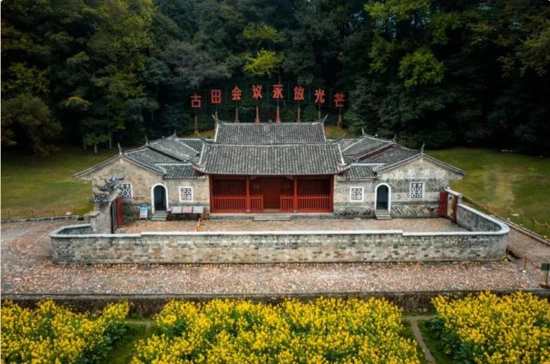 福建省上杭县古田镇,白墙青瓦的古田会议会址庄重古朴,“古田会议永放光芒”8个大字熠熠生辉。1929年12月28日至29日,中国共产党红军第四军第九次代表大会在福建省上杭县古田村举行,即“古田会议”。会议讨论通过了《中国共产党红军第四军第九次代表大会决议案》,即《古田会议决议》,被作为思想建党、政治建军的第一个纲领性文件而载入史册。从此,军魂融入血脉,军旗跟着党旗走,一支新型的人民军队跃上了历史舞台,从苦难走向辉煌。