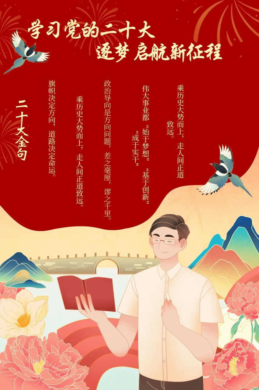 作品精神:聚焦二十大,奋进新征程。党的二十大进一步指明了党和国家事业的前进方向,是我们党团结带领全国各族人民在新时代新征程坚持和发展中国特色社会主义的政治宣言和行动纲领。
