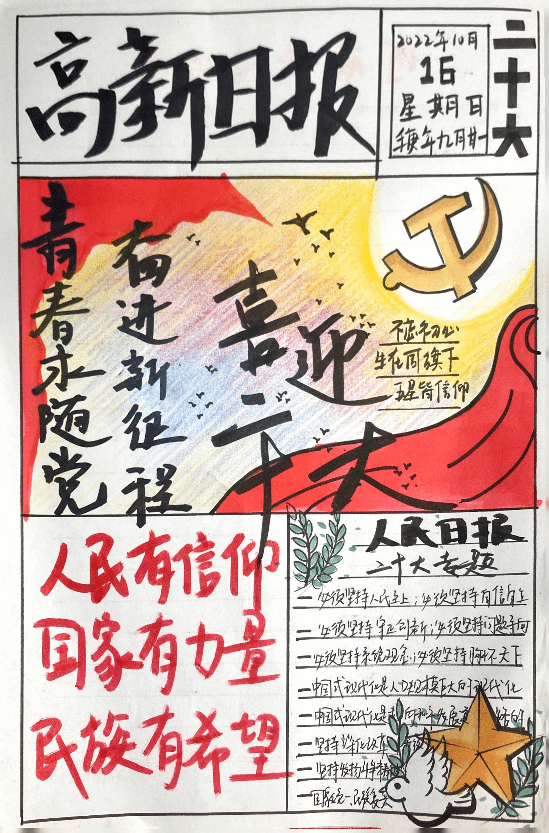 第四天打卡内容:为党的二十大顺利开展制作海报,介绍党的二十大各个专题主要内容。
